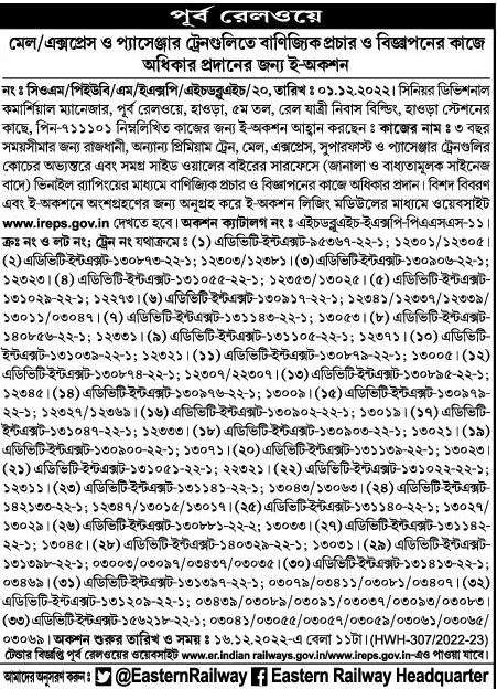 Notice is also available on Eastern Railway website www.er.indian railways.gov.in/www.ireps.gov.in.