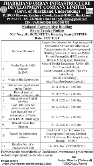 NIT No.: JUIDCO/NIT/TA Housing Board/PPP519/