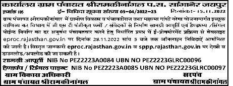 28.11.2022. Detailed information can be viewed and downloaded / uploaded on eproc.rajasthan.gov.in