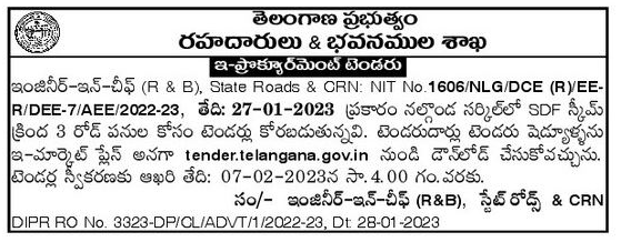 SDF Scheme in Nalgonda Circle | Tenders are invited for the following 3 road works.