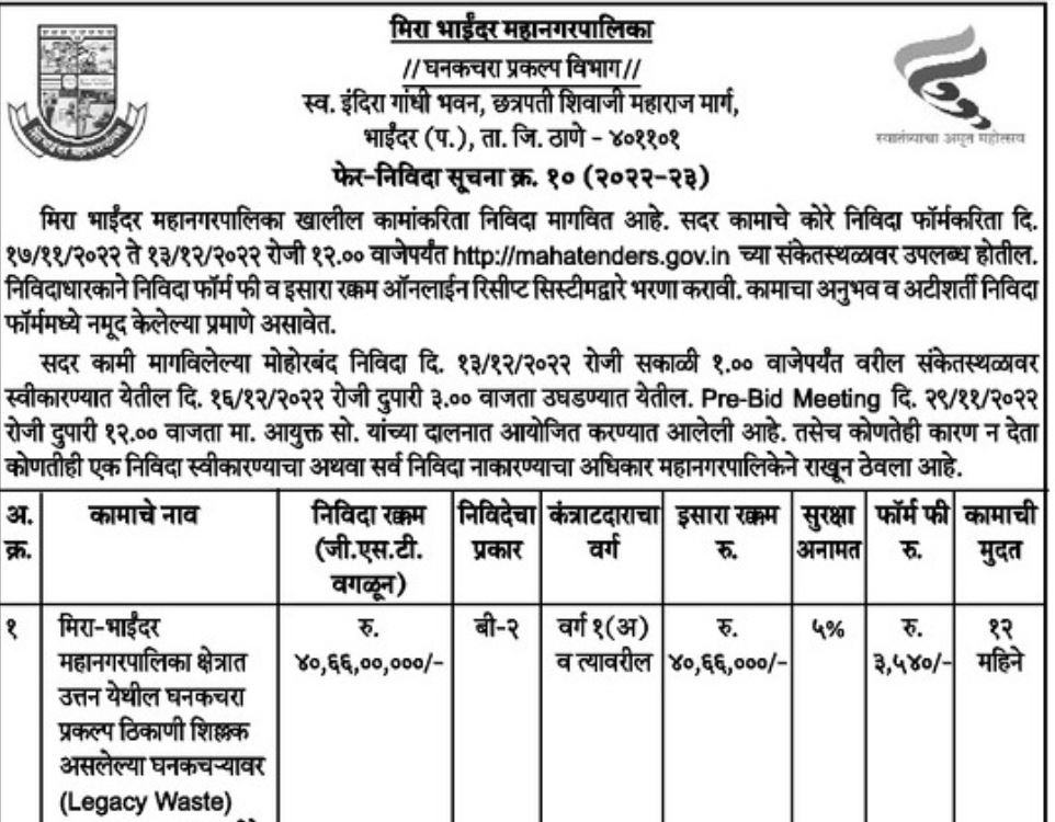 (excluding GST). Last date and time for submission of bids: 02/12/2022