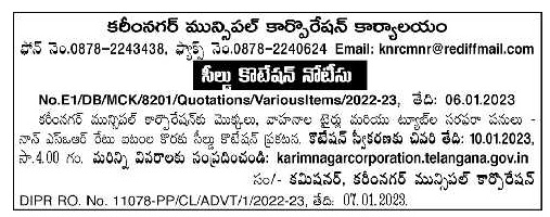SEALED QOTATION FOR NON ACR RATE ITEMS FOR SUPPLY OF PLANTS, VEHICLE TIRES AND TUBES TO KARIMNAGAR MUNICIPAL CORPORATION