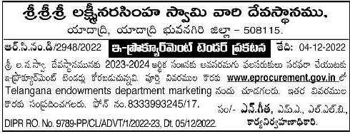 Devasthanam for financial year 2023-2024. For complete details at www.eprocurement.gov.in