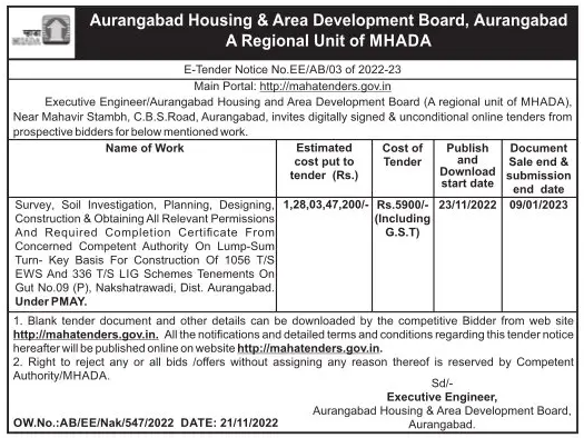 Executive Engineer/Aurangabad Housing and Area Development Board (A regional unit of MHADA),