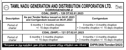 TAMIL NADU GENERATION AND DISTRIBUTION CORPORATION LTD. COAL (SHIP)