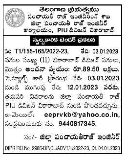 Tender are Works (11) Vikarabad Division Works,