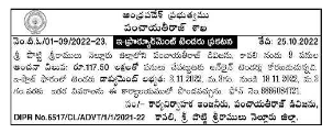 Tender at Panchaya Thiraj Division of Sri Potti Sriramulu Nellore District, Kavali Nandu Works