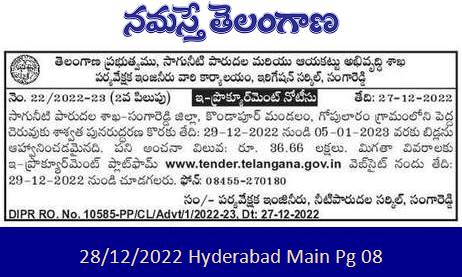 Tender doe Irrigation Department – Sangareddy District, Kondapur Mandal, Gopularam Village for Permanent Restoration