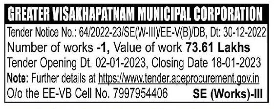 Tender for 01 work in GREATER VISAKHAPATNAM MUNICIPAL CORPORATION