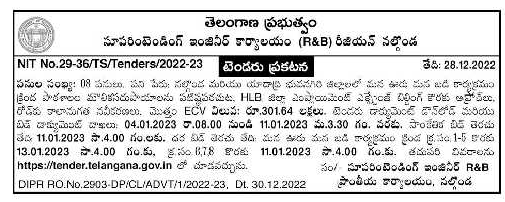 Tender for 03 Works Name of Works: Strengthening of infrastructure of schools under Mana Uru Mana Badi Program in Nalgonda and Yadadri Bhuvanagiri Districts, Afroz for HLB District Employment Exchange Building, periodic upgradation of road.