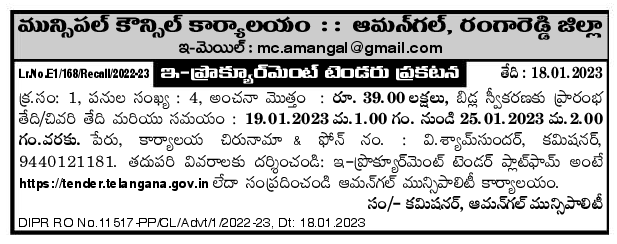 Tender for 04 works in Municipal Council Office : : Aman Gal, Ranga reddy District