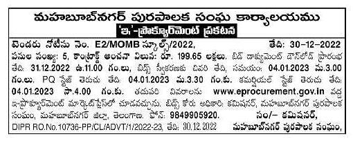 Tender for 05 works in Mahbubnagar Municipal Corporation Office
