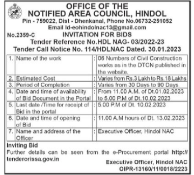 Tender for 06 Numbers of Civil Construction works as in the DTCN published in the website.