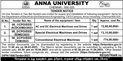 Tender for 06_3/CPO/EEE/ CEM/2023 set Conventional Electrical Machines