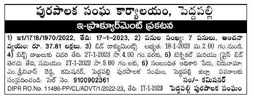 Tender for 07 works in Municipal Corporation Office, Peddapally