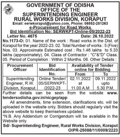 Tender for 1 (One) number of works.