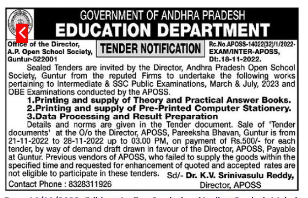 Tender for 1.Printing and supply of Theory and Practical Answer Books.