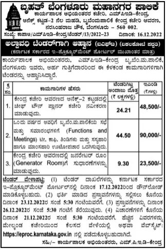 Tender for 1. Renovation of Chief Town Banner Office in Annex-2 Building of Central Office Premises.