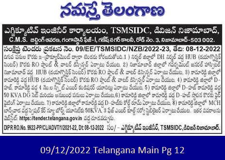 Tender for 1) Setting up of RO Plant & Water Dispenser for HUB (Diagnostic Center) at DH Nirmal in Nirmal District, 2) RO Plant & Water for HUB (Diagnostic Center) at Government General Hospital Nizamabad in Nizamabad District Installation of Dispenser, 3) Installation of RO Plant & Water Dispenser for HUB (Diagnostic Center) at Kamareddy in Kamareddy District, 4) Installation of 4 Nos. Sit Air Conditioner Units at D-Haj, Kamareddy in Kamareddy District, 5) D in Kamareddy District -Establishment of 50 KVA DG set and ancillary works at Hub Kamareddy, 6) Fire fighting arrangement for establishment of D-Hub at