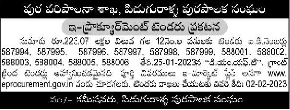 Tender for 12 Nos. works worth approximately Rs.223.07 lakhs. FT”.