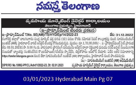 Tender for (12) works at Batangaram Fruit Market in Rangareddy District.
