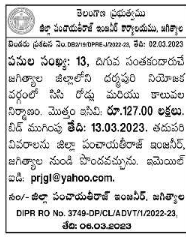 Tender for 13 Construction of CC Roads and Canals in Dharmapuri Constituency of Jagittala District by the undersigned.