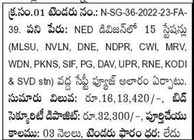 Tender for 15 Stations in NED Division (MLSU, NVLN, DNE, NDPR, CWI, MRV, WDN, PKNS, SIF, PG , DAV, UPR, RNE, KODI | & SVD stn) setting of safety fuse alarm.