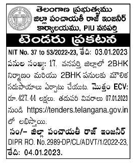Tender for 17 works 2BHK in Vanaparthi District Setting up infrastructure for construction and 2BHK works.