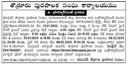 Tender for 2 No. s. 563 Slab Construction on National Highway Saucer Drain (Left Side) – 5.00 Lakhs. 5.00 Lakhs.
