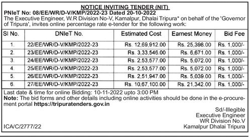 Tender for 23/EE/WR/D-V/KMP/2022-23