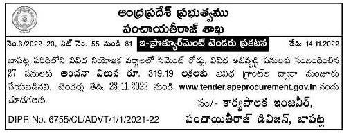 27 works related to cement roads and various development works in various constituencies under Bapatla