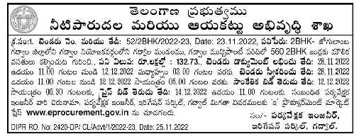Tender for 2BHK- About providing infrastructure for 5602BHK houses in Gadwala Mandal, Gadwala Municipality of Gadwala