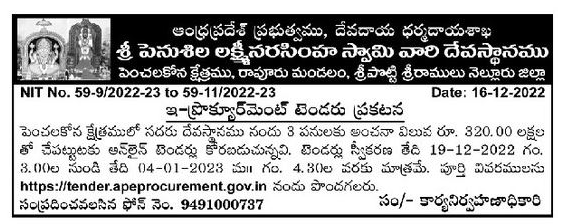 Tender for 3 works in the said temple in Penchalakona Kshetra