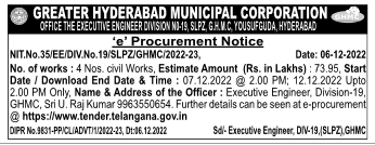Tender for 4 Nos. civil Works in GREATER HYDERABAD MUNICIPAL CORPORATION