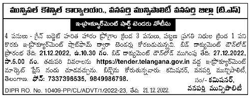 Tender for 4 Works – 3 works under Green Budget Haritha Haram Programme, 1 work under Urban Development Fund