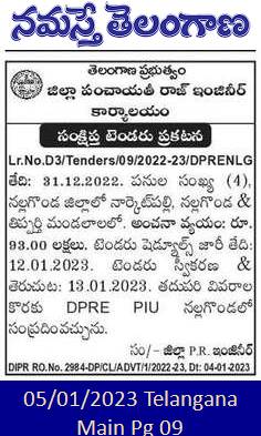 Tender for 4 works in Narketpally, Nalgonda & Tipparthi Mandals in Nalgonda District