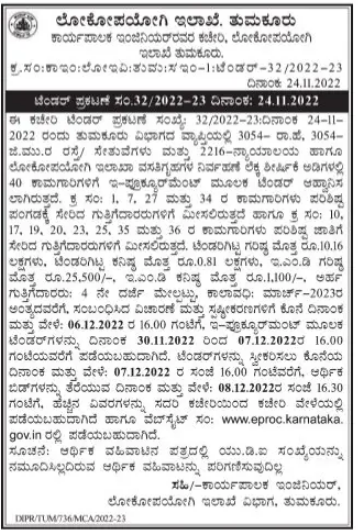 Tender for 40 works under the maintenance account of GM Road Bridges and 2216-Court and Public Works Department Housing.