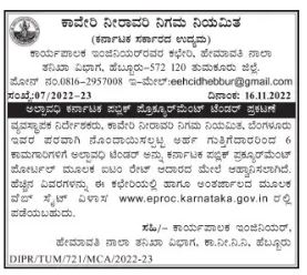 Irrigation Corporation Limited, Bangalore is invited through Karnataka