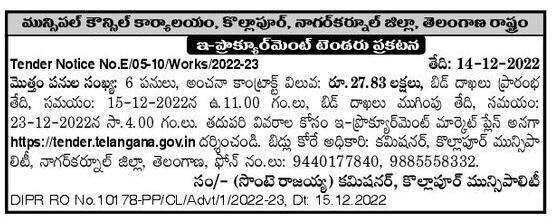 Tender for 6 works in Kolhapur Municipality