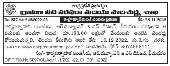 Tender for 6 works under S&S Division, Bhimavaram