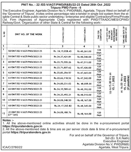 Tender for 64/DNIT/EE-V/AGT/PWD/2022-23