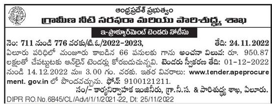 Tender for 66 works sanctioned in Eluru area