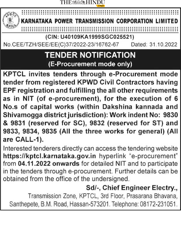 6No.s of capital works (within Dakshina kannada and Shivamogga district jurisdiction)