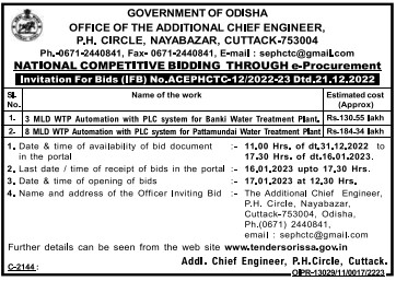 Tender for 8 MLD WTP Automation with PLC system for Pattamundai Water Treatment Plant