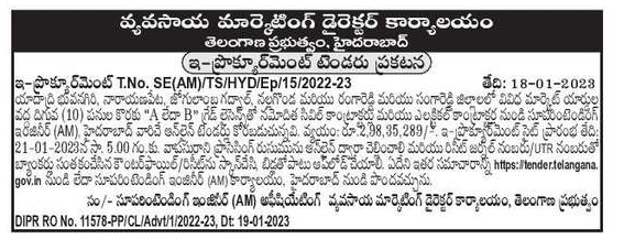 “A or B” Grade License for below (10) works at various Market Yards in Yadadri Bhuvanagiri,