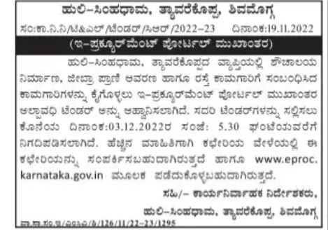 No:Ka.Ni.Ni/TPL/Tender/CR 2022-23, Dated:19.11.2022