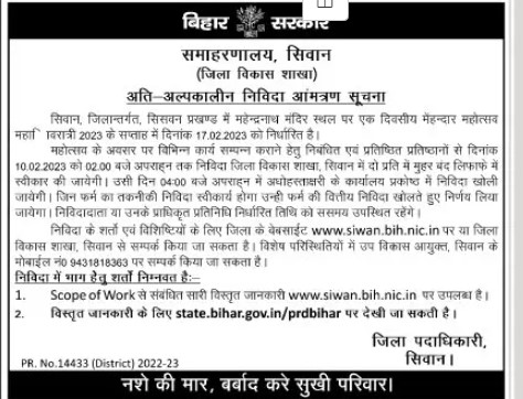 the registered and reputed establishments till 02.00 PM on 10.02.2023 at District Development Branch, Siwan, on
