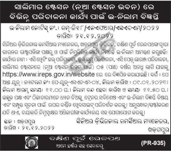 Tender for AC Waiting Hall Maintenance, Clock Room Maintenance, AC Paid Lounge Maintenance at Salimar Station (For New Station Building) for a period of 05