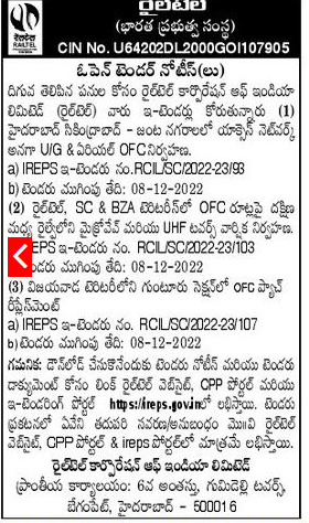 Tender For Access network in Hyderabad Secunderabad – twin cities. Annual Maintenance of Microwave and UHF Towers OFC Patch in Guntur Section of Vijayawada Territory.