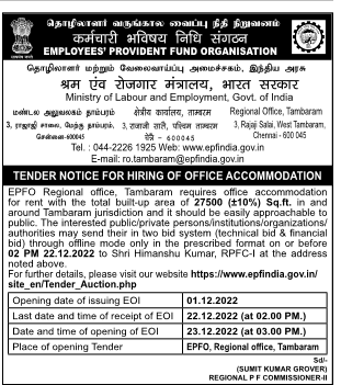 EPFO Regional office, Tambaram requires office accommodation